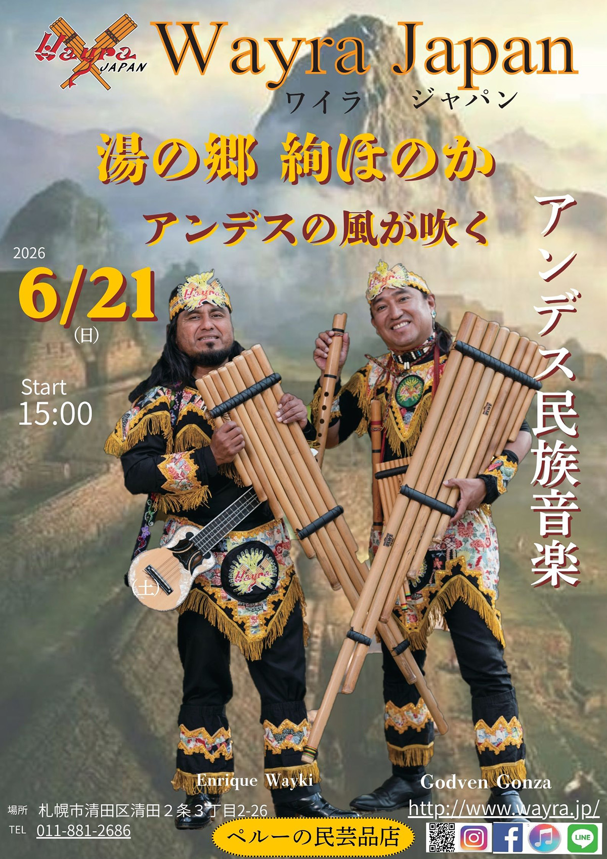 私達wayraは南米の民俗音楽を演奏しています。音楽を通じて